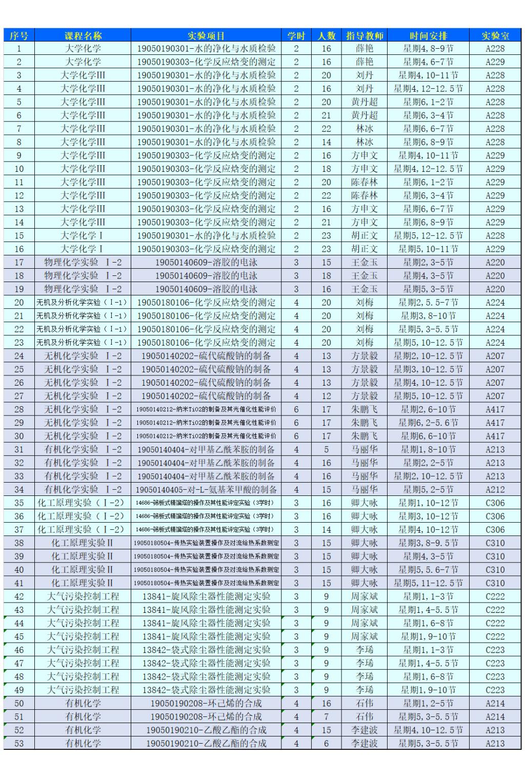 化學化工實驗教學示范中心2021年春季學期第11周實驗教學安排