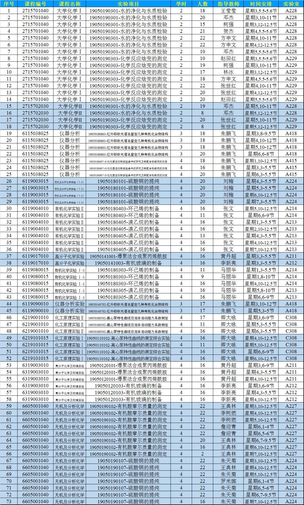 化學化工實驗教學示范中心2021年秋季學期第4周實驗教學安排