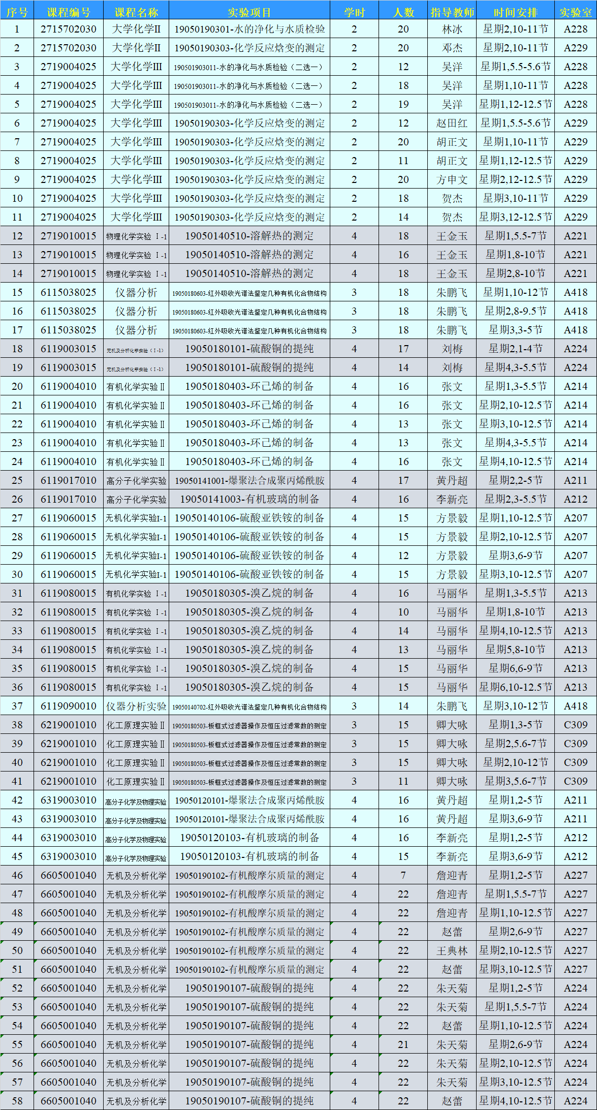 化學(xué)化工實(shí)驗(yàn)教學(xué)示范中心2021年秋季學(xué)期第5周實(shí)驗(yàn)教學(xué)安排