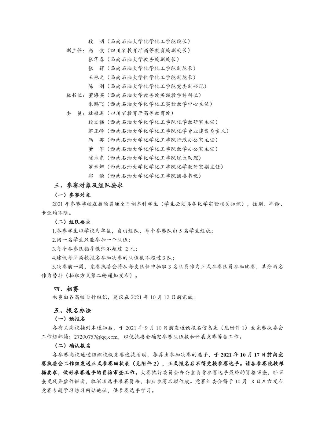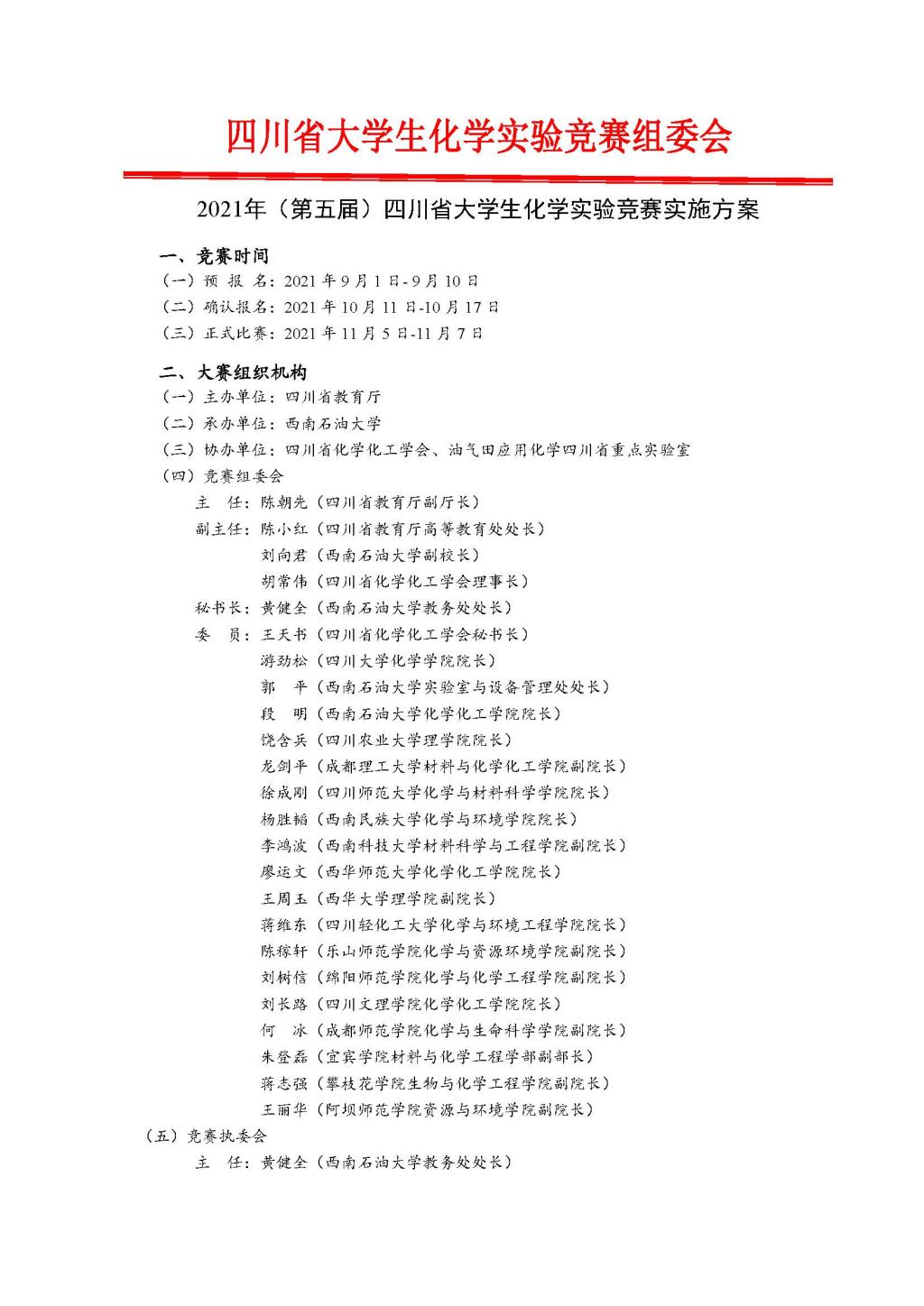 2021年(第五屆)四川省大學生化學實驗競賽實施方案