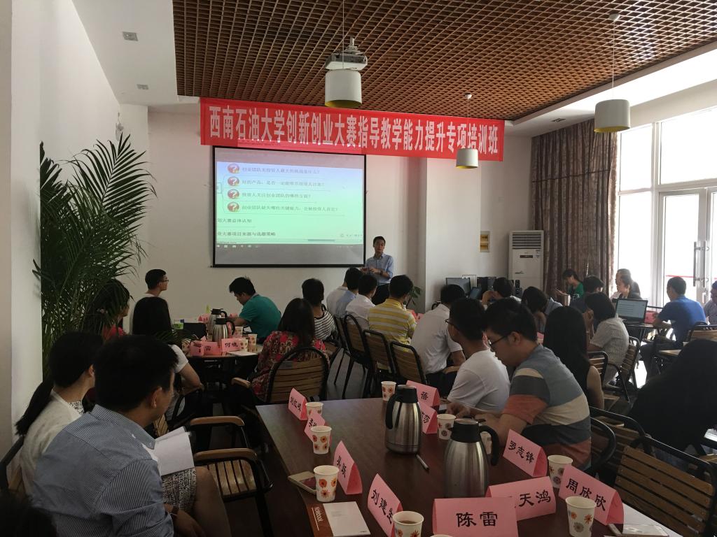 為了加快培養“互聯網+”相關領域急需的應用型、復合型創新創業師資團隊,做好第三屆 “互聯網+”大學生創新創業大賽暨校園選拔賽籌備工作,5月25、26日,西南石油大學創新創業大賽指導教學能力提升專業培訓班在大學生創新創業實踐基地舉行。此次培訓班由我校大學生創新創業中心主辦,并邀請到了教育部特聘專家和全國“互聯網+”大學生創新創業大賽國賽評委前來指導培訓。