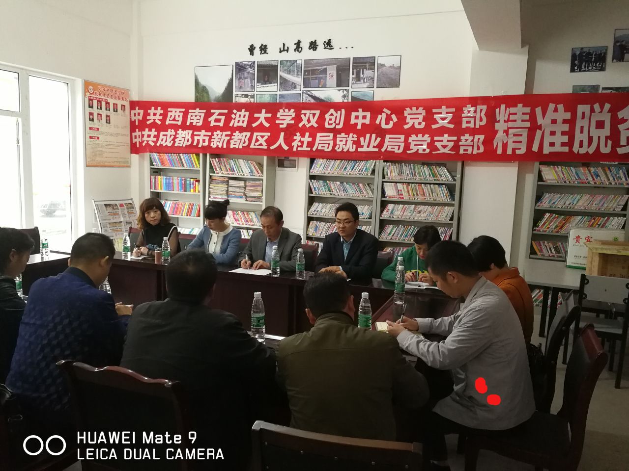 10月20日上午,西南石油大學雙創(chuàng)中心黨支部、成都新都區(qū)就業(yè)局黨支部赴雅安市滎經(jīng)縣龍蒼溝鎮(zhèn)萬年村(貧困村)開展了黨支部聯(lián)創(chuàng)聯(lián)建暨精準脫貧幫扶活動,將黨的關懷送到每一名困難群眾家中、暖到每一名群眾心上。