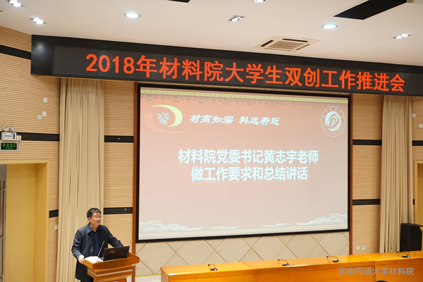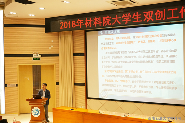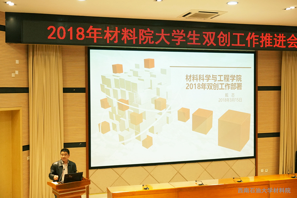 隨后,戴老師對材料院2018年雙創工作做了安排和部署:組織各類學科競賽;組織好本年度各類創新創業競賽;進一步提升師生雙創意識與積極性,切實增強學生創新創業意識、精神與能力;加強學院創新創業二級示范俱樂部建設,舉辦高質量的創新創業活動(如西油材子自主開放雙創講堂,眾創課堂,金點子工程),提升學生創新創業能力;對有創業意向的同學加強指導,注重學生雙創團隊組建,提供政策與資金支持,對已注冊公司的同學,持續性關注與幫扶,使其能夠長遠發展;完善雙創導師制,建立師長直通車(我與導師有個約會),進一步完善梳理材料院雙創人才培養模式;做好2018年度油氣田材料立項,探索創新創業項目進入畢業設計工作。
