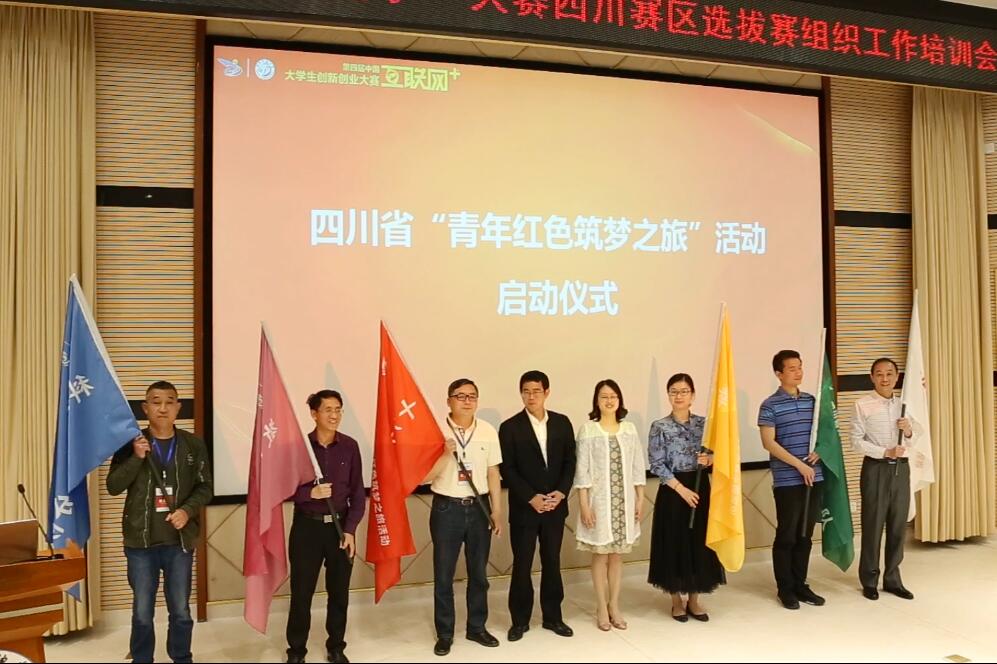 大會舉行了四川省“青年紅色筑夢之旅活動”啟動儀式。四川大學的十九大宣講小分隊、四川農業(yè)大學的科技中國小分隊、西南石油大學的法治中國小分隊、西華師范大學的教育中國小分隊、西南醫(yī)科大學的健康中國小分隊、四川職業(yè)技術學院的幸福中國小分隊作為省級小分隊代表上臺授旗。