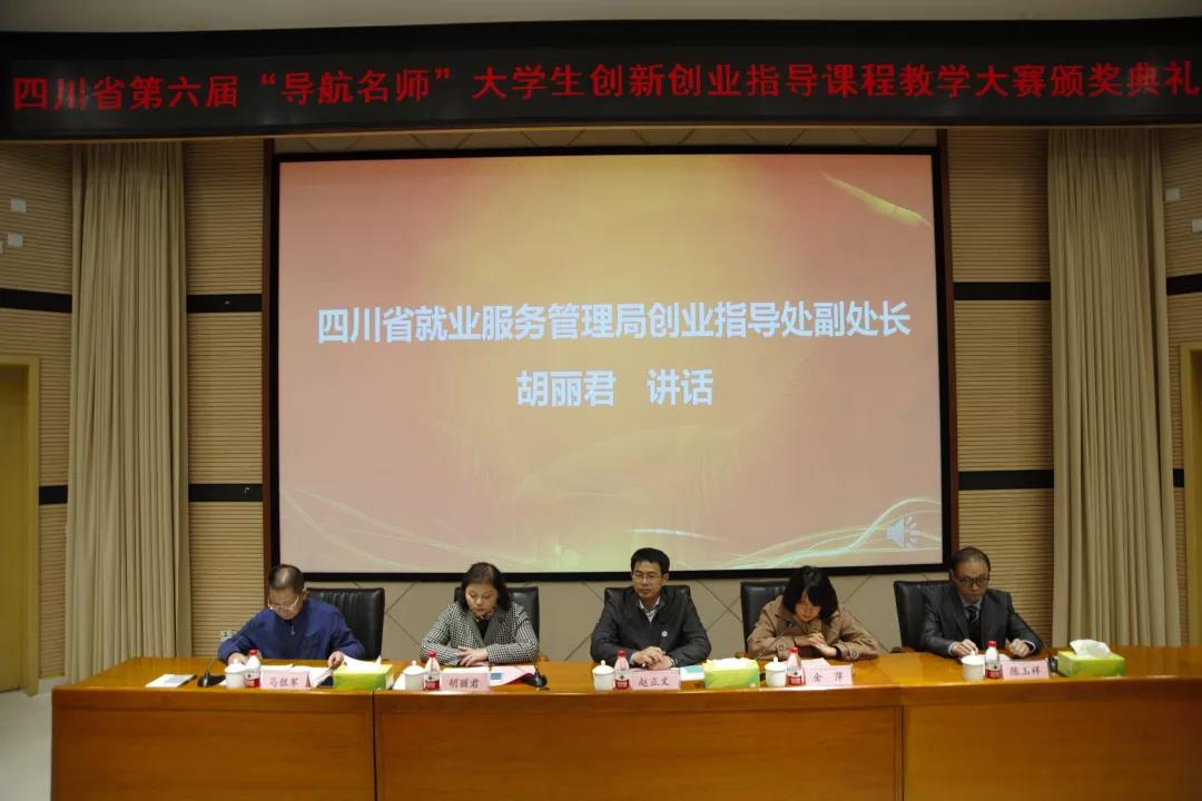 11月16日,四川省第六屆“導航名師”大學生創新創業指導課程教學大賽(本科組)決賽頒獎典禮在我校思學樓A114報告廳舉行。我校黨委副書記趙正文,四川省教育廳高校學生工作處二級調研員金萍,四川省就業服務管理局創業指導處副處長胡麗君,四川省教育廳就業指導中心主任馬銀軍,我校雙創中心主任(院長)、大賽評委組組長陳玉祥,以及來自四川省教育廳、四川省人力資源和社會保障廳的領導、老師與全省各本科院校的24位選手參加了頒獎典禮。