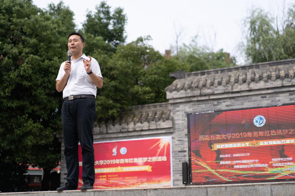 參訪前,雙創中心主任姚遠對全體學生發表講話,希望同學們能利用青年紅色筑夢之旅活動扎根中國大地了解國情民情,在實踐中收獲成長。會上全體同學做了宣誓。