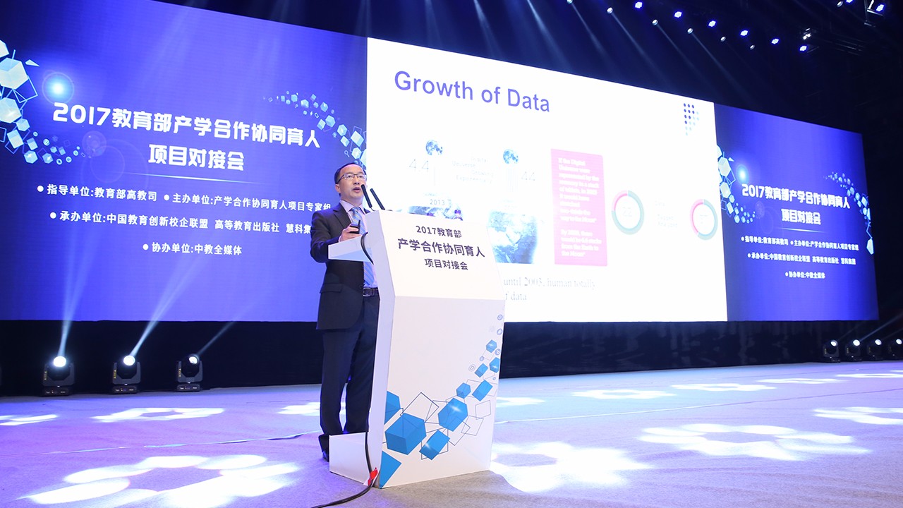 11月9-10日,“2017教育部產學合作協同育人項目對接會”在北京會議中心召開。在全國上下深入學習貫徹十九大精神的背景下,對接會圍繞新時代高等教育發展、新興產業發展趨勢、新工科建設及產學合作協同育人等主題,組織了專題報告、分領域交流對接、產學合作項目推介展等活動,搭建校企合作平臺,構建產教融合良好生態,完善校企協同育人機制。本次對接會吸引了來自全國高校、企業的1800余名代表參會,參會高校近500所,參會企業350余家。會議由教育部高等教育司指導,教育部產學合作協同育人項目專家組主辦,工信部信息化和軟件服務業司副司長任利華到會致辭,教育部高教司理工處處長吳愛華主持。