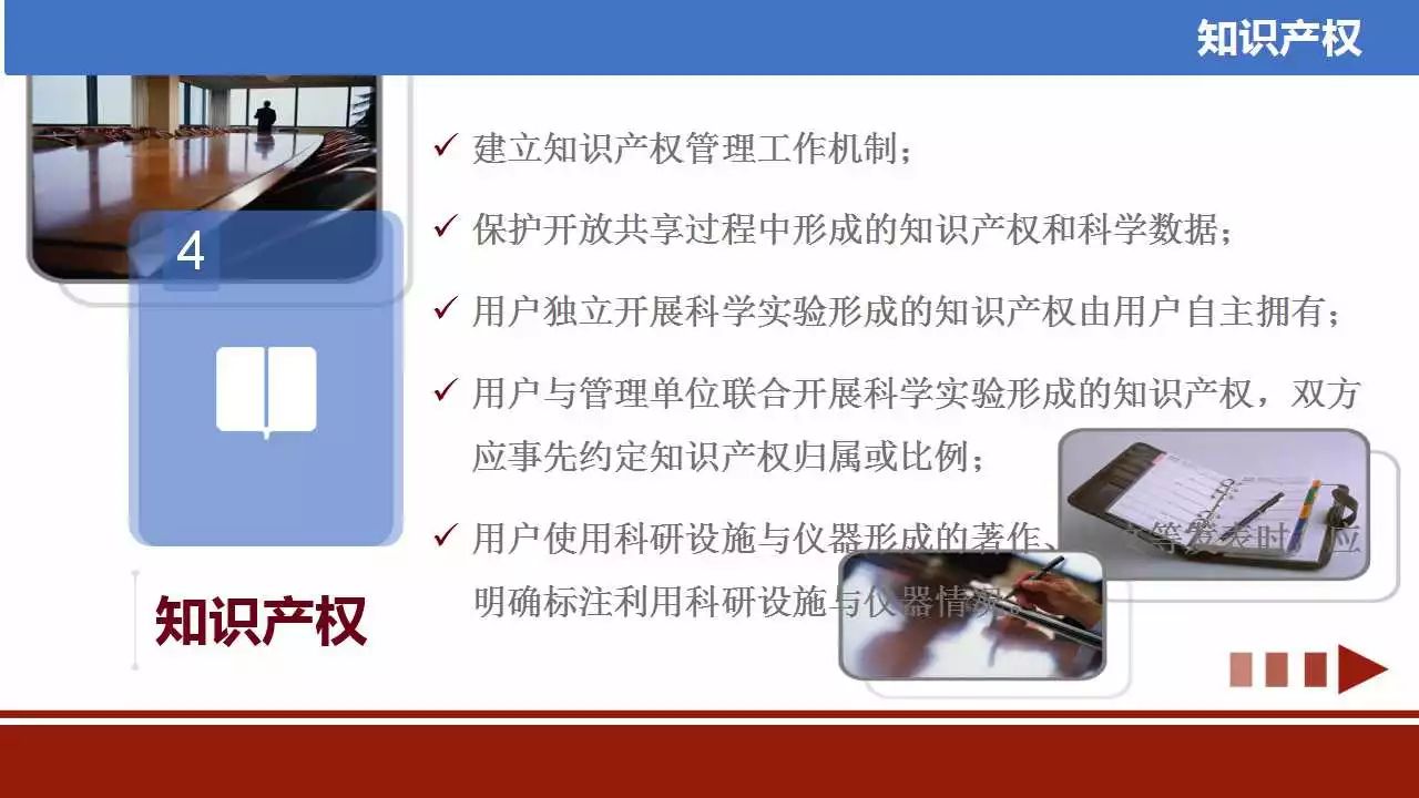 《意見》要求,非涉密和無特殊規定限制的科研設施與儀器應一律向社會開放。二是堅持獎懲結合的原則。應建立以用為主、用戶參與的評估監督體系,形成和科研設施與儀器向社會服務的數量、質量緊密結合的獎懲機制。三是堅持分類管理的原則。對于不同類型的科研設施與儀器,制定不同的考核標準和辦法,實施分類考核。