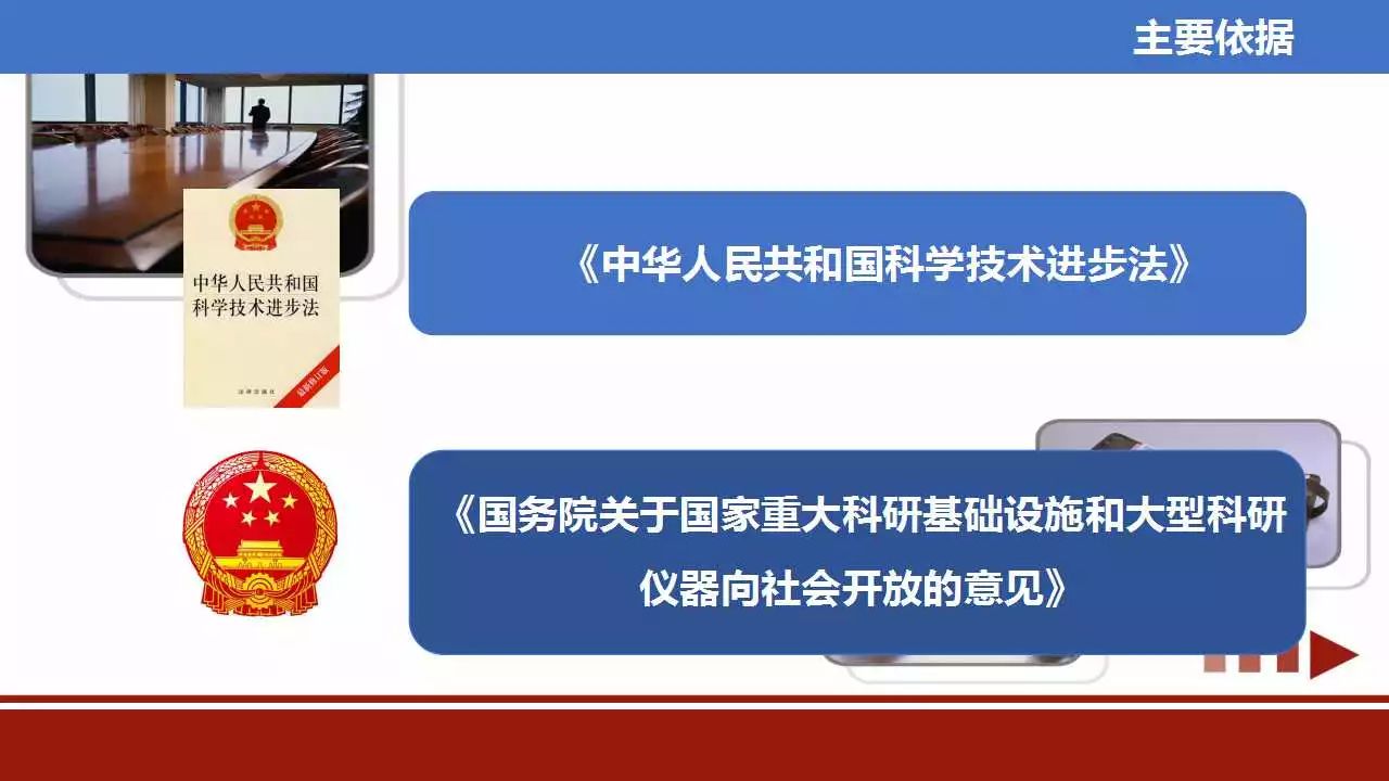 《中華人民共和國科學進步法》第六十五條規定:“科學技術資源的管理單位應當向社會公布所管理的科學技術資源的共享使用制度和使用情況,并根據使用制度安排使用”。2014年12月,國務院發布了《國務院關于國家重大科研基礎設施和大型科研儀器向社會開放的意見》(以下簡稱《意見》),明確要求“制定促進科研設施與儀器開放的管理制度和辦法”。