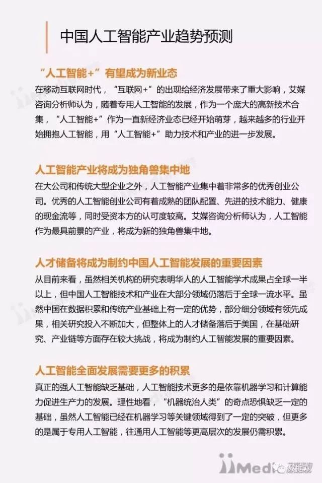 目前,中國的人工智能研究處于爆發期,行業巨頭公司正逐漸完善自身在人工智能的產業鏈布局,而不斷涌現出的創業公司將持續在垂直領域深耕深挖。從目前來看,計算機視覺技術是人工智能的核心技術之一,廣泛的商業化渠道和技術基礎使其最為熱門。未來,“人工智能+”有望成為新業態,人工智能產業將成為獨角獸集中地,而人才儲備則將成為制約中國人工智能發展的重要因素。