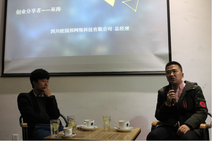 為了培養(yǎng)大學(xué)生創(chuàng)新創(chuàng)業(yè)意識(shí),提升創(chuàng)新創(chuàng)業(yè)能力,11月20日下午15:00石工院大學(xué)生創(chuàng)新創(chuàng)業(yè)俱樂(lè)部在校創(chuàng)新創(chuàng)業(yè)教育實(shí)踐基地V咖成功舉辦創(chuàng)業(yè)沙龍第十一期——“創(chuàng)業(yè)項(xiàng)目如何選擇與創(chuàng)業(yè)者應(yīng)該具備怎樣的素質(zhì)?”。本次沙龍邀請(qǐng)了兩位創(chuàng)業(yè)者嘉賓,分別是成都玄米可可科技有限公司法人劉峻宏和四川校園邦網(wǎng)絡(luò)科技有限公司總經(jīng)理巫濤,另外,石工院團(tuán)委書(shū)記舒小立、輔導(dǎo)員宋思哲以及50余名有創(chuàng)業(yè)意向的學(xué)生參加此次創(chuàng)業(yè)沙龍經(jīng)驗(yàn)分享會(huì)。