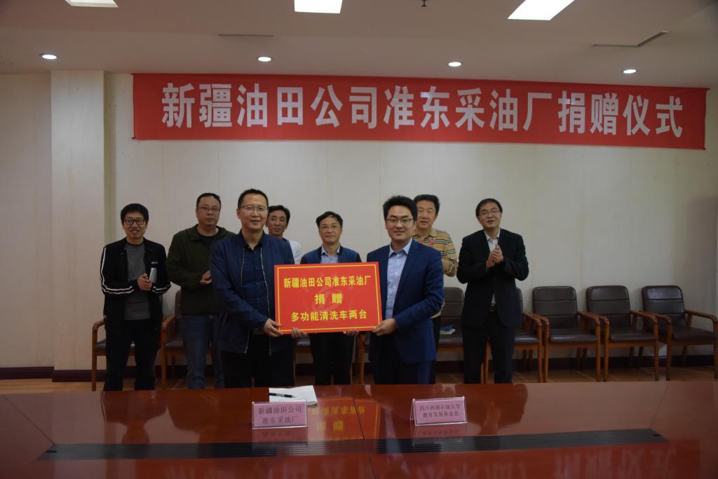 4月18日上午,新疆油田公司準(zhǔn)東采油廠捐贈儀式在辦公樓209舉行。新疆油田公司準(zhǔn)東采油廠向我校捐贈兩臺多功能清洗車用于支持學(xué)生創(chuàng)新創(chuàng)業(yè)。