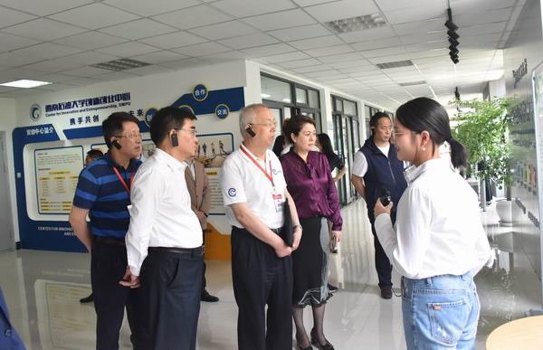 匯報會后,趙金洲、古麗帕麗·阿布杜娜、趙正文陪同張鳳有一行進行了校內實地考察,先后參觀了校史館,考察了創新創業中心、計科院眾創空間、國家大學科技園。專家組還分別召開了教師、學生座談會,對干部、教師進行了隨機訪談,核查了學校的申報資料。