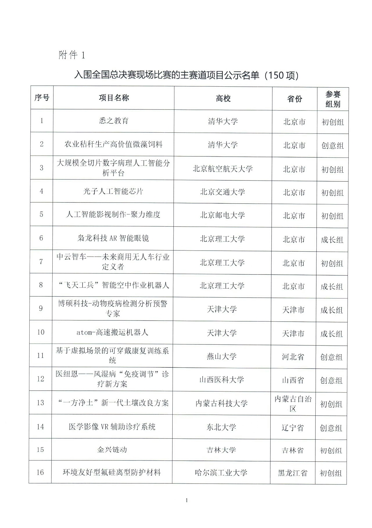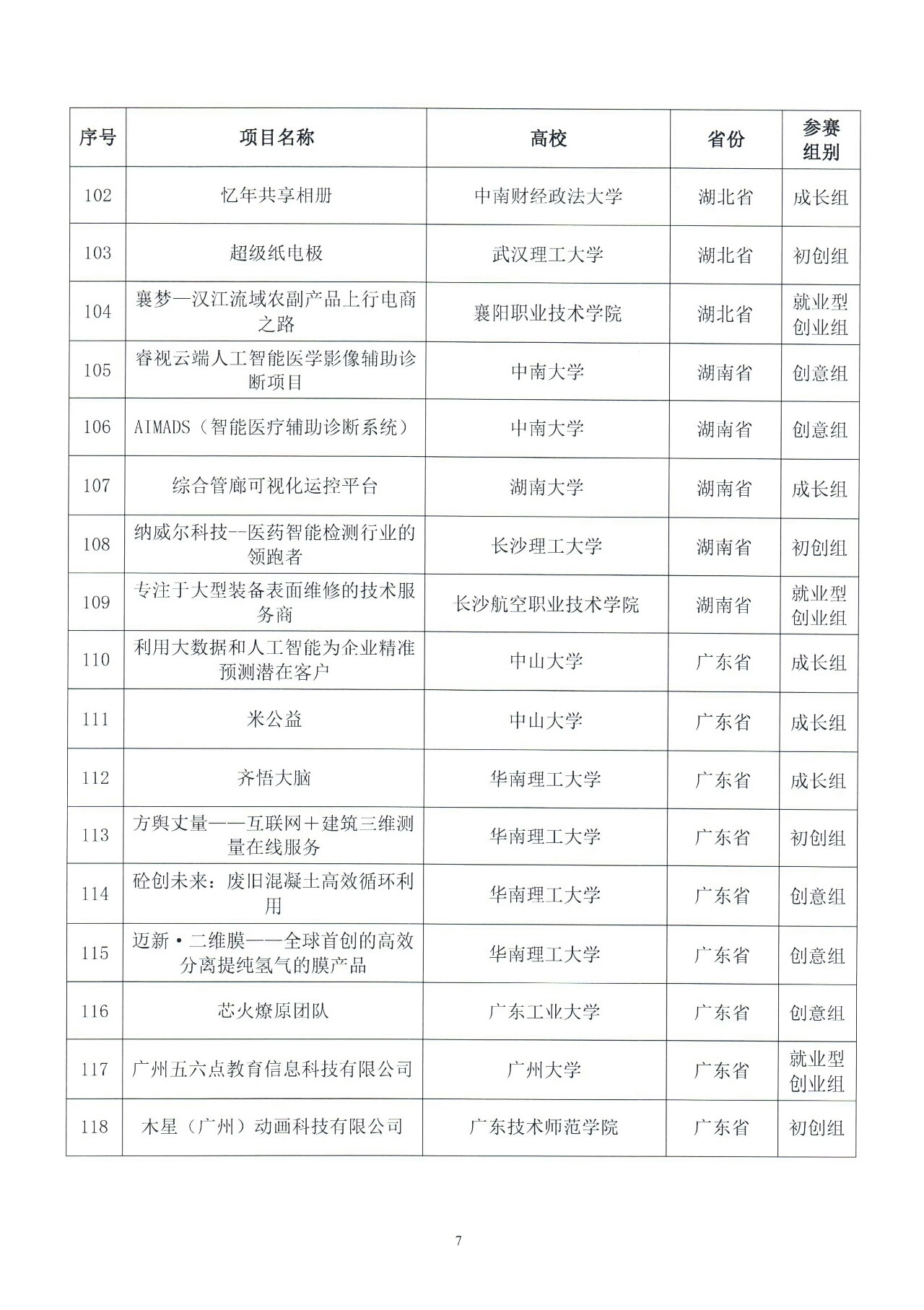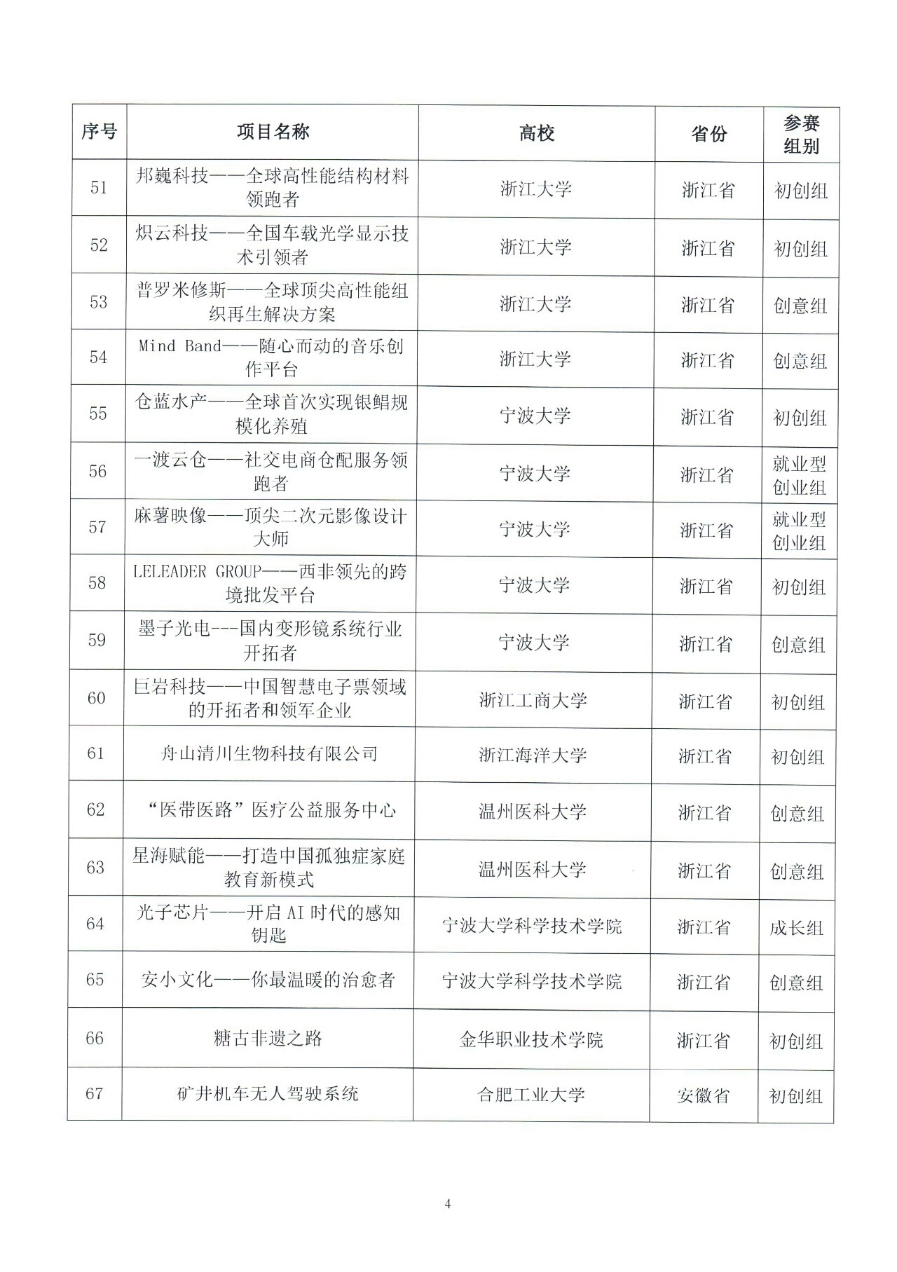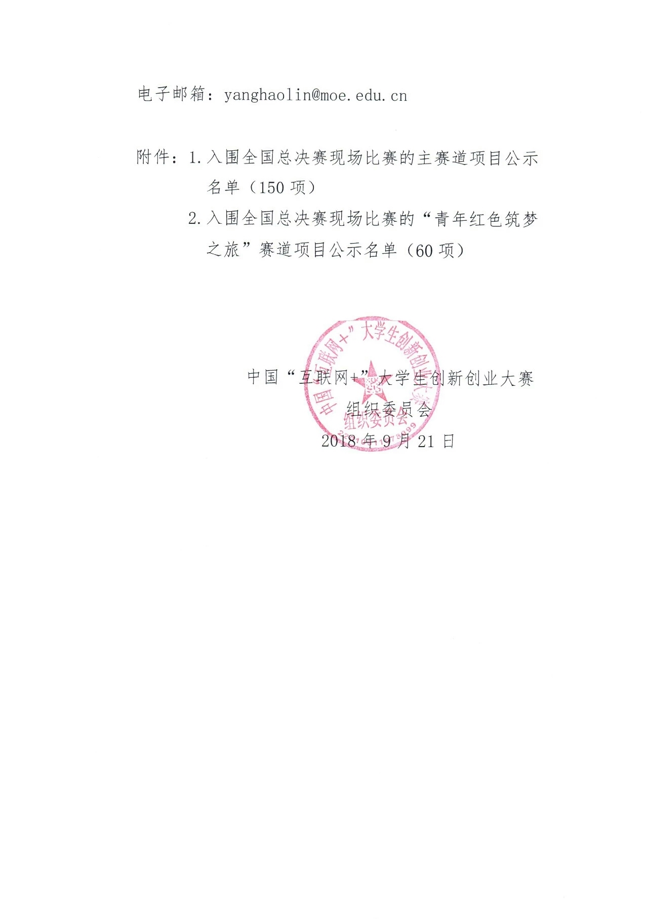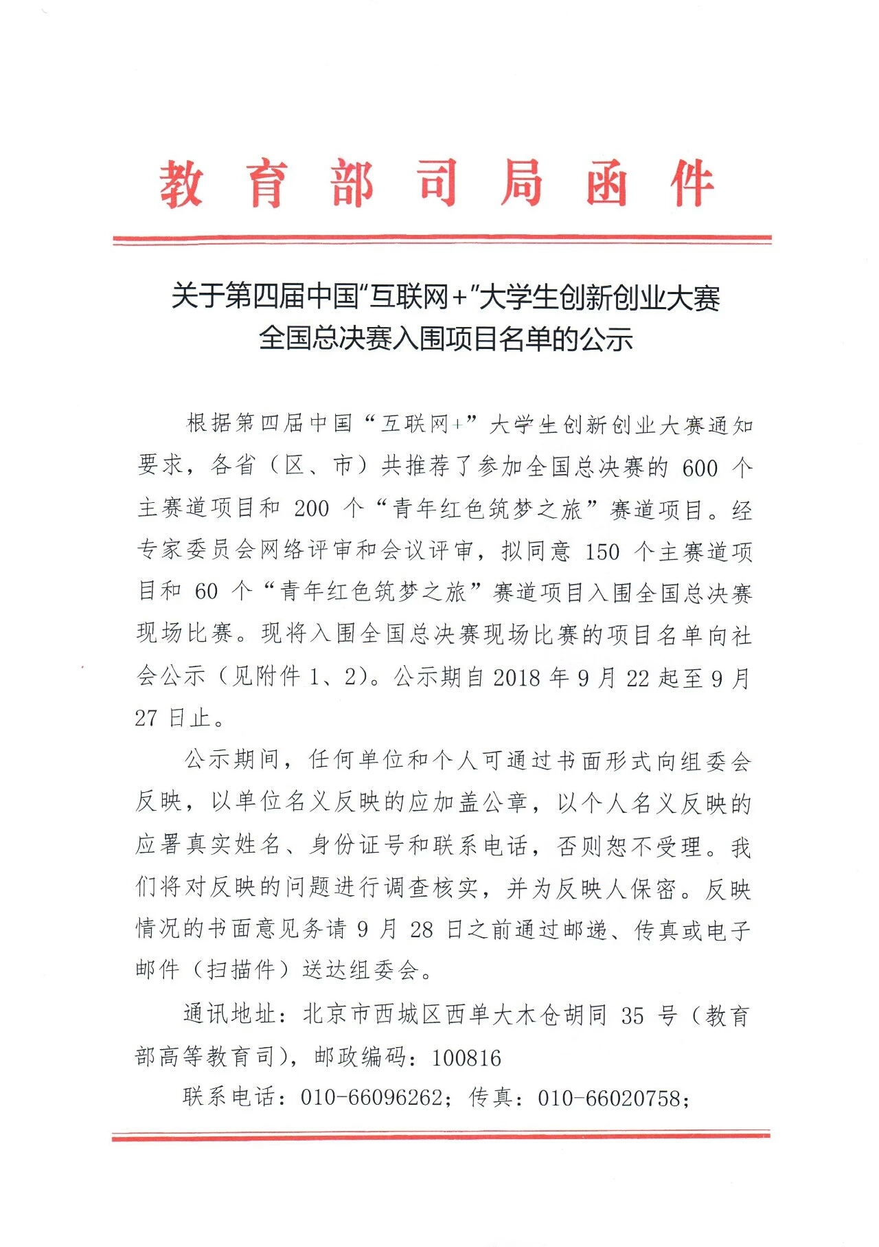 關于第四屆中國“互聯網+”大學生創新創業大賽全國總決賽入圍項目名單的公示