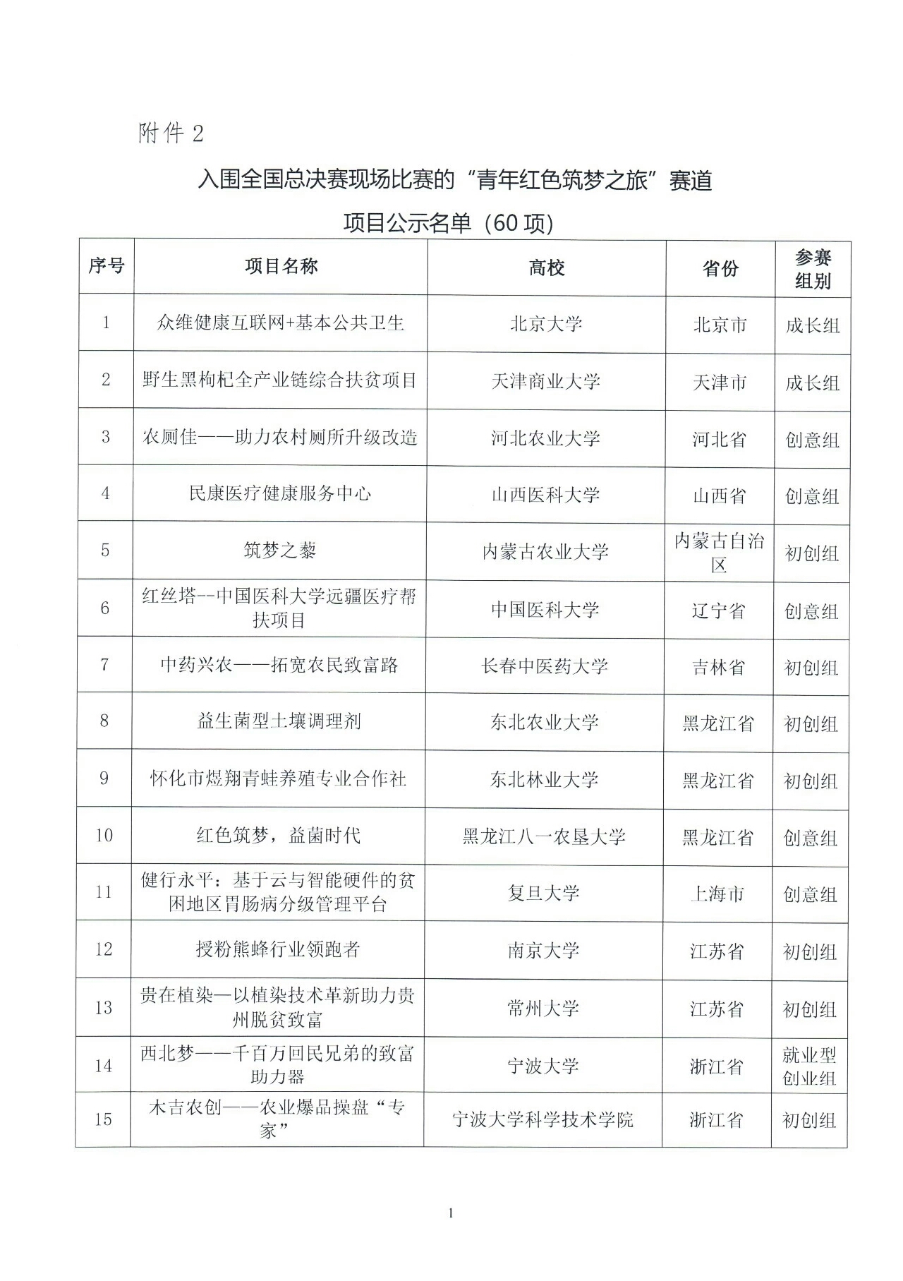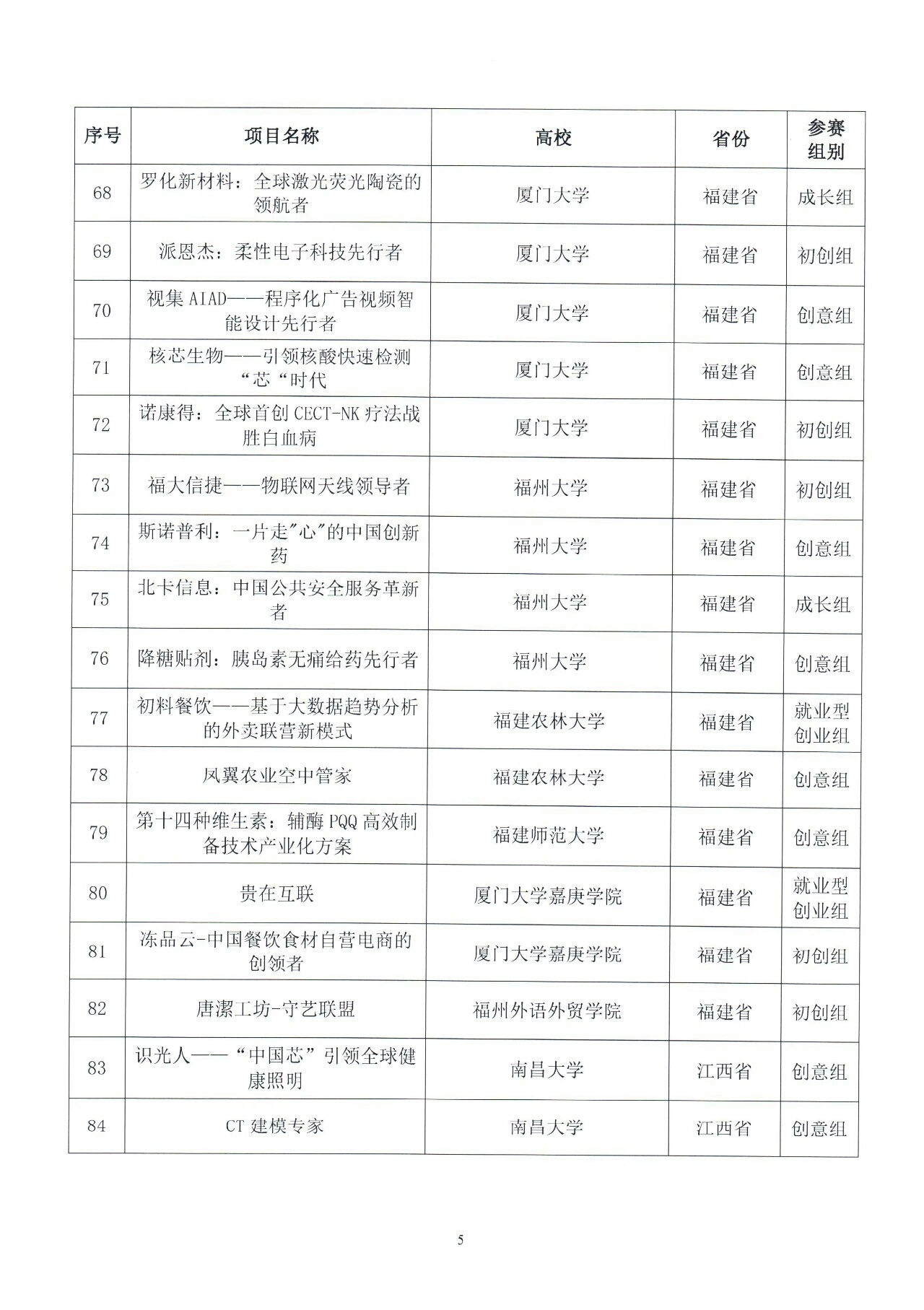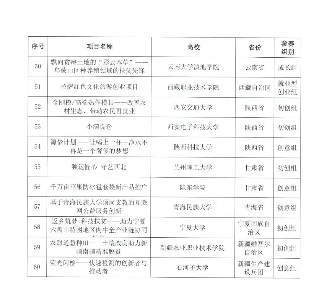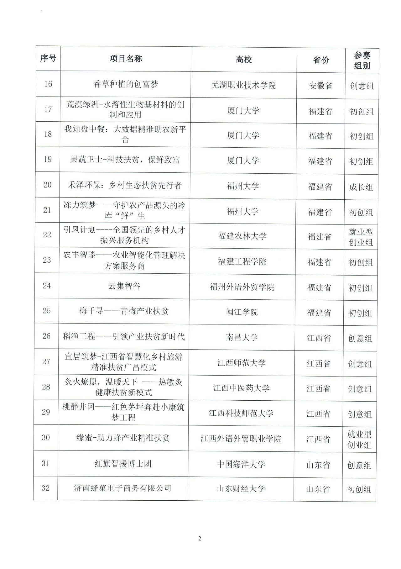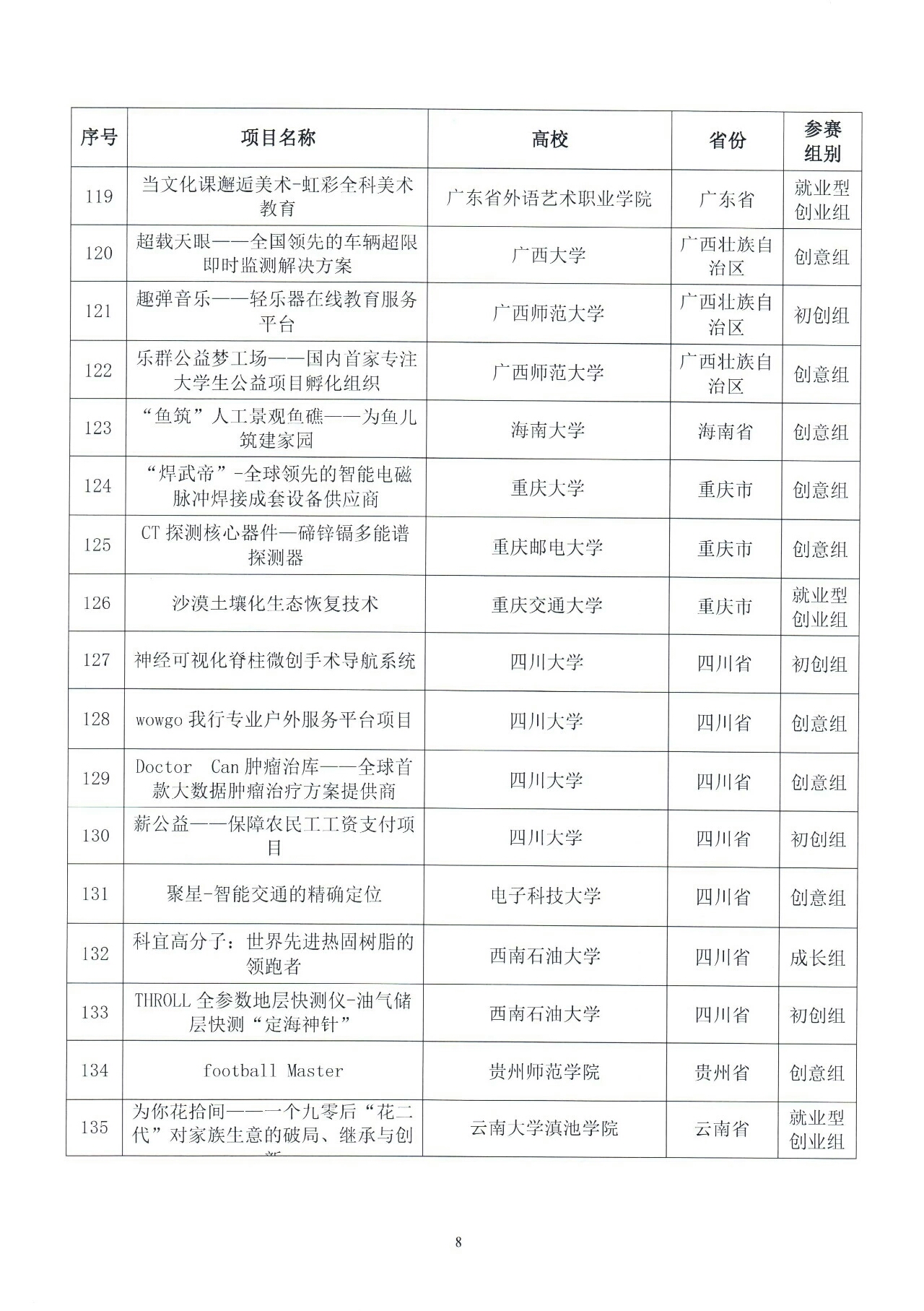 關于第四屆中國“互聯網+”大學生創新創業大賽全國總決賽入圍項目名單的公示