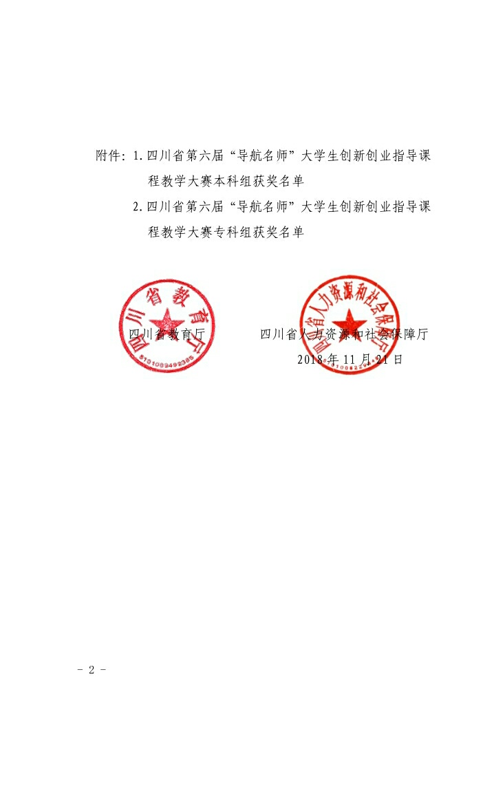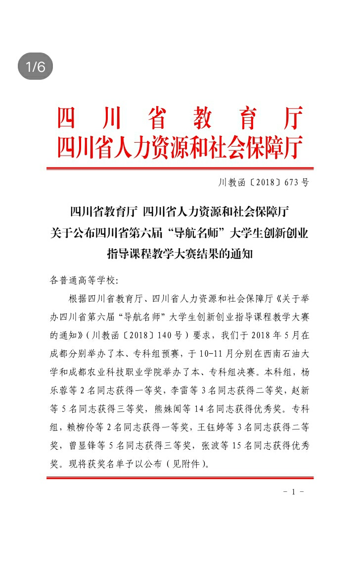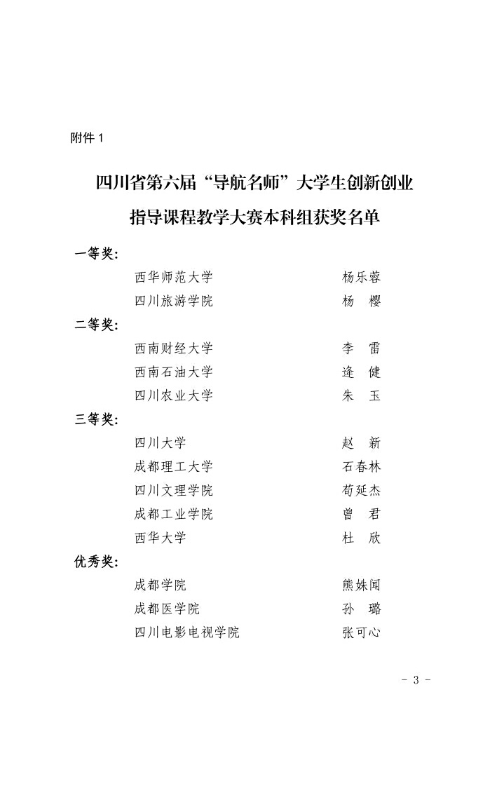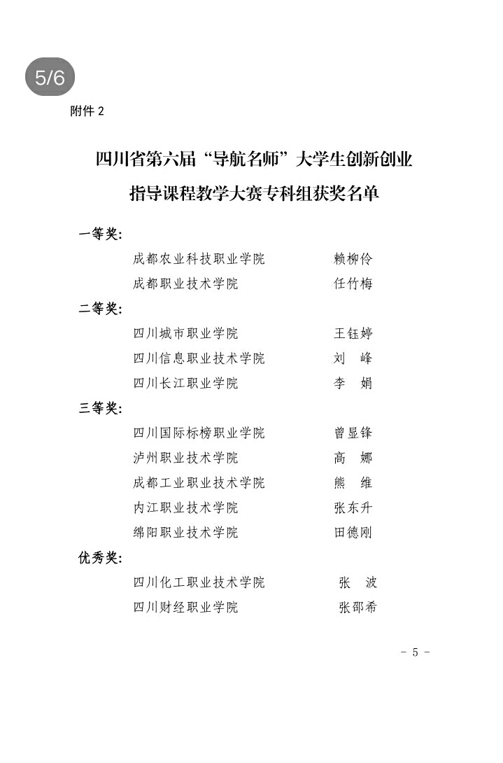 關(guān)于公布四川省第六屆“導(dǎo)航名師”大學(xué)生創(chuàng)新創(chuàng)業(yè)指導(dǎo)課程教學(xué)大賽結(jié)果的通知
