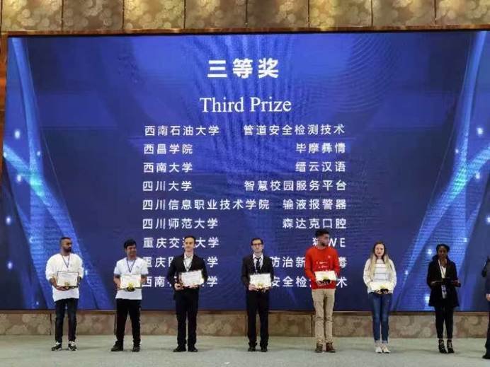 11月12日,由重慶市人力資源和社會保障局、重慶教委、四川省人力資源和社會保障局、四川教育廳四部門聯(lián)合舉辦的“創(chuàng)業(yè)西部·留在雙城”成渝雙城經(jīng)濟(jì)圈外國留學(xué)生創(chuàng)新創(chuàng)業(yè)大賽決賽在重慶大學(xué)城大創(chuàng)谷舉行。經(jīng)過初賽網(wǎng)評和決賽答辯環(huán)節(jié),我校巴基斯坦籍國際學(xué)生MAJID HUSSAIN等學(xué)生完成的“管道安全監(jiān)測技術(shù)”項(xiàng)目榮獲三等獎(jiǎng),我校獲評“優(yōu)秀組織獎(jiǎng)”。