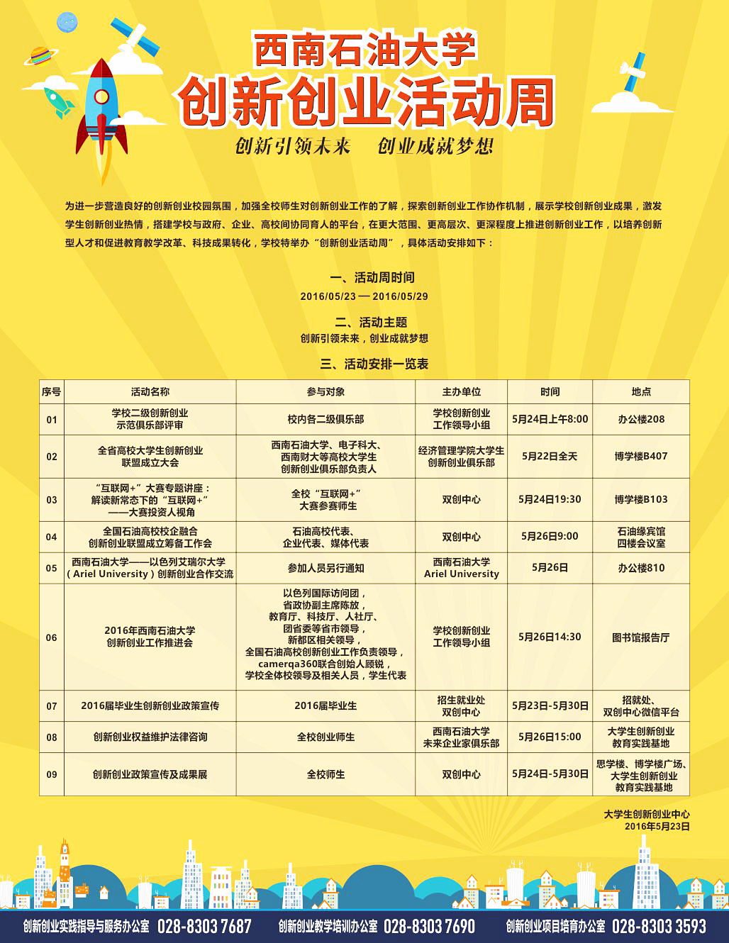 西南石油大學創新創業活動周工作推進會等活動安排
