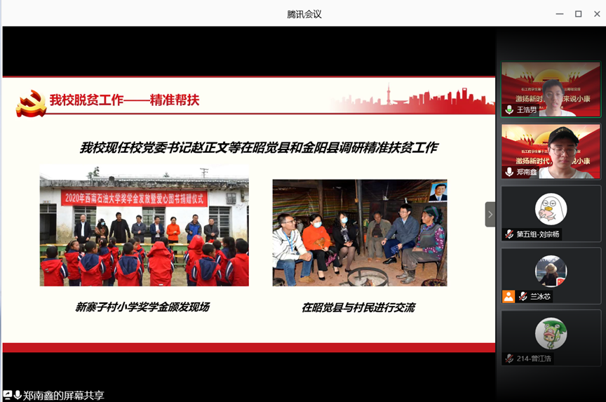 2020年,是全面建成小康社會之年。近些年,脫貧攻堅戰取得重大成就,特別是以農村的變化最為突出。金陽縣新寨子村在我校的幫扶下也已脫貧摘帽。鄭南鑫、王浩男在第十三期微黨課上圍繞著《激揚新時代,我來說小康》這一主題向我們介紹了脫貧攻堅戰中發生重大變化的新農村及我校扶貧工作取得的傲人成績。