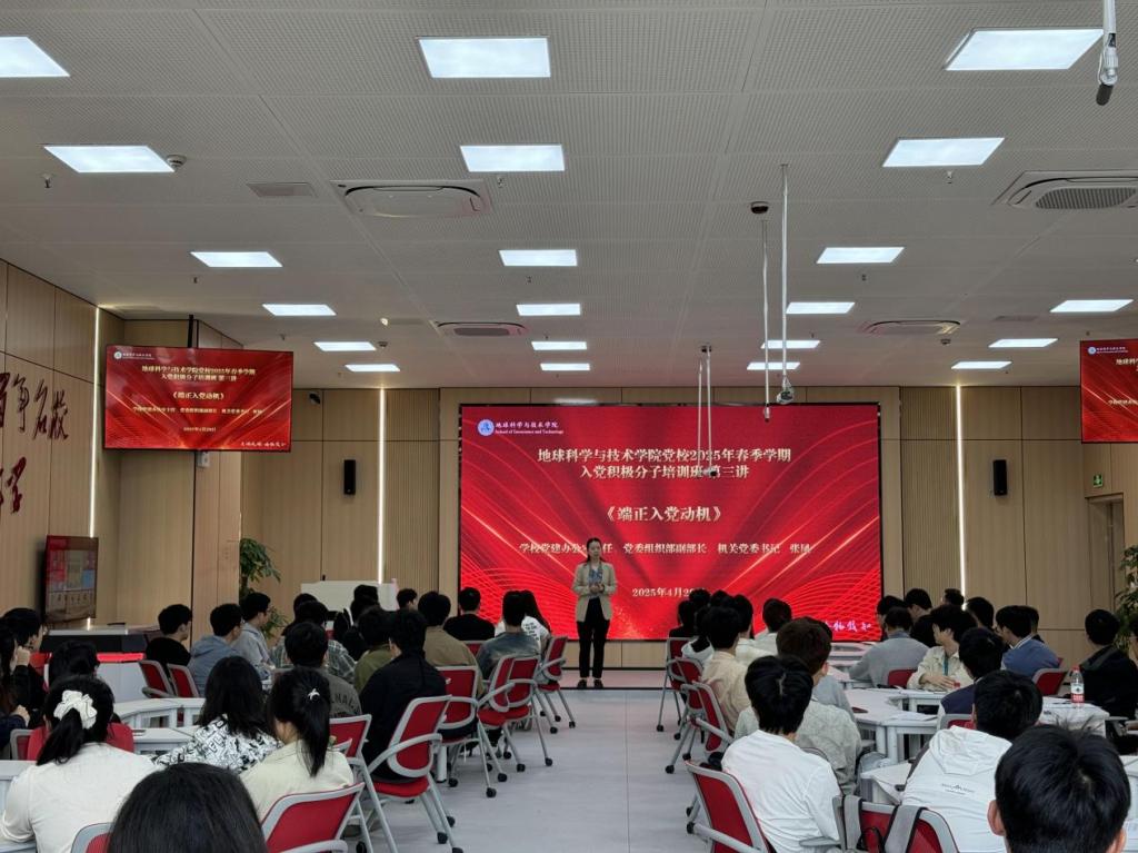 為深化入黨積極分子對黨的認識,引導學員樹立正確的入黨動機,4月29日下午,學校黨建辦公室主任、黨委組織部副部長、機關黨委書記張鳳在學校智慧黨建中心以《端正入黨動機》為主題,為地科院2025年春季學期入黨積極分子培訓班學員講授專題黨課。