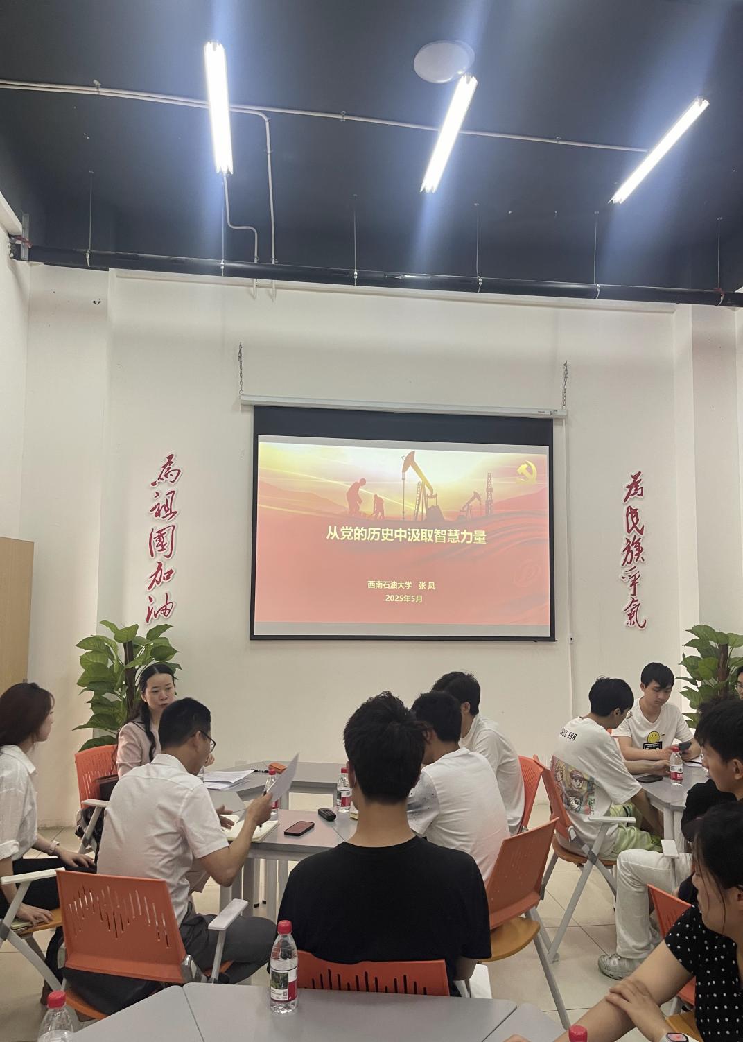 學校黨建辦公室主任、黨委組織部副部長、機關黨委書記張鳳老師為畢業生黨員帶來了題為《從黨的歷史中汲取智慧力量》的專題黨課。張鳳老師從黨的百年奮斗歷程中提煉出寶貴經驗,鼓勵畢業生黨員要堅定理想信念,勇于擔當作為,將黨的歷史智慧轉化為推動能源事業發展的強大動力。黨課內容深入淺出,既有理論高度又有實踐指導,深受畢業生黨員的歡迎。