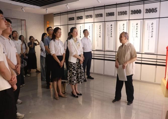 支部成員在校史館開(kāi)啟“尋根之旅”。在張明洪教授深情講述下,陳列的泛黃文件、陳舊儀器不再是冰冷的物件,而成為歷史的“發(fā)聲者”。張明洪教授動(dòng)情回顧了學(xué)校建校之初先招生后建校、邊教學(xué)邊勞動(dòng)、在實(shí)驗(yàn)室里日夜堅(jiān)守、為攻克能源技術(shù)難關(guān)不畏艱難勇攀高峰的感人故事。“能源報(bào)國(guó)是刻在石大人骨血里的信念”,老校友的話語(yǔ)鏗鏘有力,傳遞著代代石大人矢志不渝的精神接力,讓在場(chǎng)的年輕黨員深刻領(lǐng)悟到先輩們的赤誠(chéng)初心與使命擔(dān)當(dāng)。
