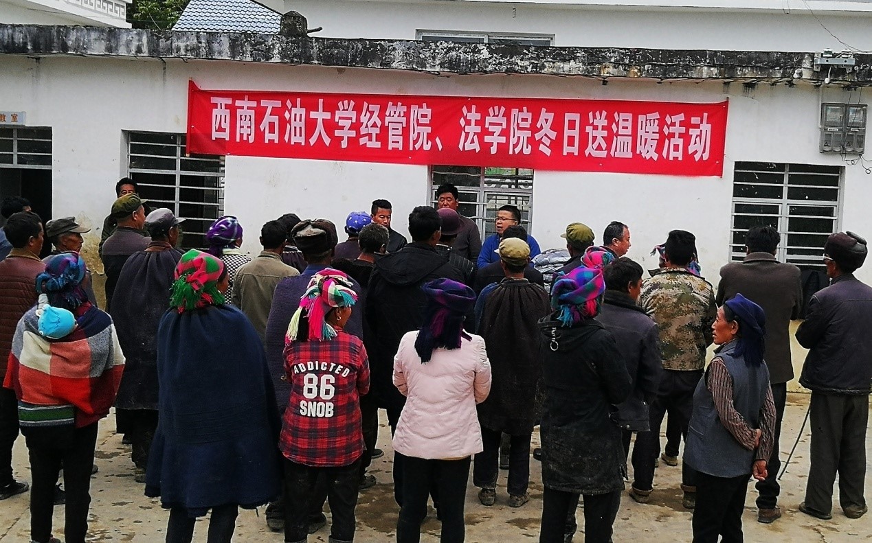 10月17日是我國第6個“扶貧日”,也是第27個國際消除貧困日。這一天,經(jīng)管院、法學(xué)院在學(xué)校定點扶貧單位——涼山州金陽縣天地壩鎮(zhèn)新寨子舉行冬日送溫暖活動,為全村55位60歲以上的老人送上了“冬日暖陽”——愛心棉衣。老人們歡天喜地、笑逐顏開,一邊試穿一邊開心地說:“暖和,好看,感謝石油大學(xué)的老師們!”個別行動不便的老人,由其子女代為領(lǐng)取。