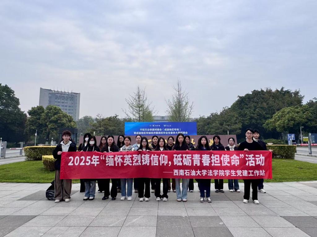 2025年4月4日,法學院黨員代表前往新都區烈士陵園開展"緬懷英烈鑄信仰,砥礪青春擔使命"——清明祭掃活動。本次活動共計20余名學生黨員、發展對象、入黨積極分子參與。