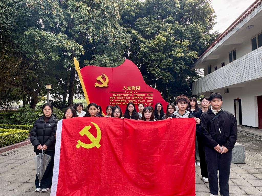 同志們在新都區烈士陵園紀念廣場誦讀入黨誓詞;在莊嚴肅穆的烈士紀念碑前手捧黃白菊束,獻至碑前,每一束花都承載著“山河已無恙,英魂請安眠”的無聲告慰;在新都區革命烈士紀念館了解烈士事跡,透過斑駁史料感悟"敢教日月換新天"的革命精神;以花臺為書案,書寫著"承遺志,續華章"的青春誓言,表達對英烈的緬懷之情和對未來的展望。最后,全體成員合影留念。