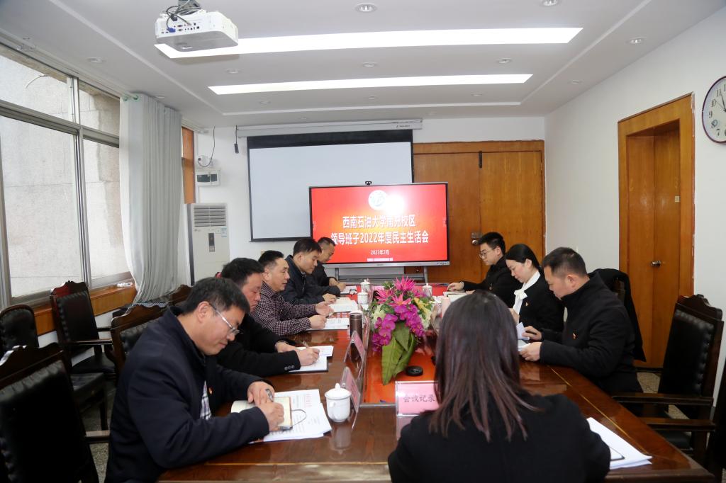 根據學校黨委統一安排部署,2月22日,南充校區召開了2022年度校區領導班子民主生活會。學校黨委督導組組長、學校黨建辦主任、黨委組織部副部長張鳳,督導組成員、學校黨委宣傳部副部長杜鵬、學校黨委組織部干部科科長吳放蒞會指導。校長助理、南充校區黨委常務副書記張光君主持會議,南充校區領導姚遠、范起東、覃鴻飛、諶貴輝參加會議。
