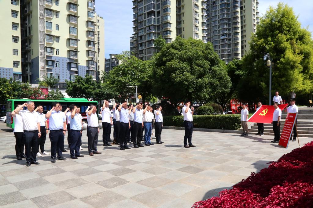 參觀學(xué)習(xí)結(jié)束后,全體同志在張思德銅像廣場整齊列隊,向張思德銅像鞠躬行禮,深切緬懷張思德同志,聆聽了微黨課《張思德平凡人生的殷實價值》。諶貴輝帶領(lǐng)全體同志,重溫了《中國共產(chǎn)黨入黨誓詞》。大家面向黨旗高舉右手,緊握拳頭,莊嚴宣誓,回顧了入黨初心,再次接受了黨性教育。
