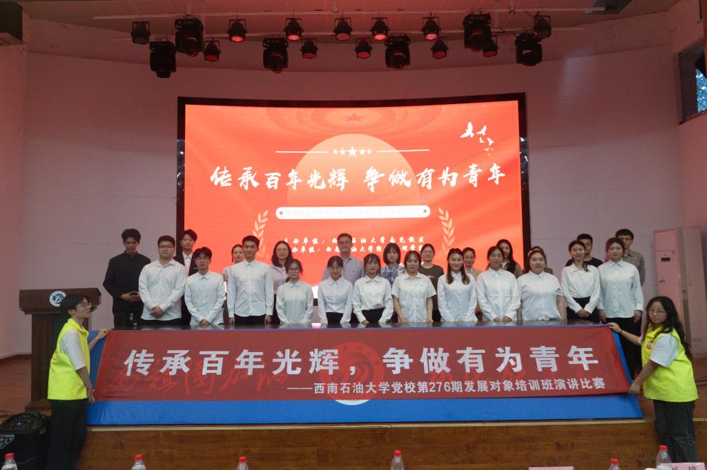 5月9日下午,學校黨校第276期發展對象培訓班舉辦“傳承百年光輝,爭做有為青年”主題演講比賽。南充校區黨政辦公室副主任梁軍剛,各學院指導老師擔任比賽評委。
