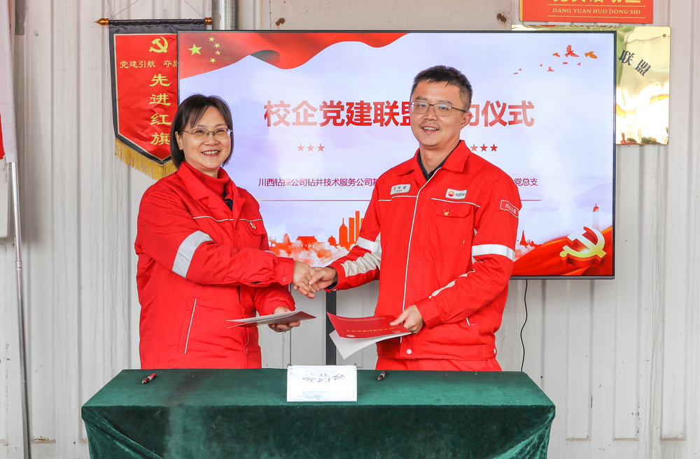 當日的重頭戲當屬簽約儀式。工程訓練中心與川西鉆探公司正式簽署了《校企黨建結對聯盟協議書》,這一協議的簽訂,宛如一顆種子,種下了雙方在黨建工作領域深度合作的希望,標志著雙方的合作正式拉開帷幕。