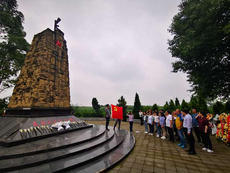 在紀念館工作人員的講解帶領下,支部全體黨員首先來到了莊嚴肅靜的烈士墓區。這里安葬了成都戰役中蒲江境內犧牲的110名烈士,第二次國內革命戰爭、解放初期剿匪、抗美援朝戰爭、中印中越邊境自衛還擊戰、參加南蘇丹維和任務以及執行其他任務中犧牲的烈士107名,共計217名烈士。在山坡頂上,矗立著成都戰役紀念碑。全體黨員面朝成都戰役紀念碑肅穆佇立,并鞠躬致敬,共同緬懷在成都戰役中犧牲的革命先烈。在紀念碑前,面對鮮艷的黨旗,肖曉華書記帶領全體黨員重溫入黨誓詞,共憶初心使命,堅定地表達了對黨的忠誠、全心全意為人民服務的宗旨和為黨的事業奮斗終生的決心和信心,進一步增強了黨員守初心、擔使命的思想自覺和行動自覺。