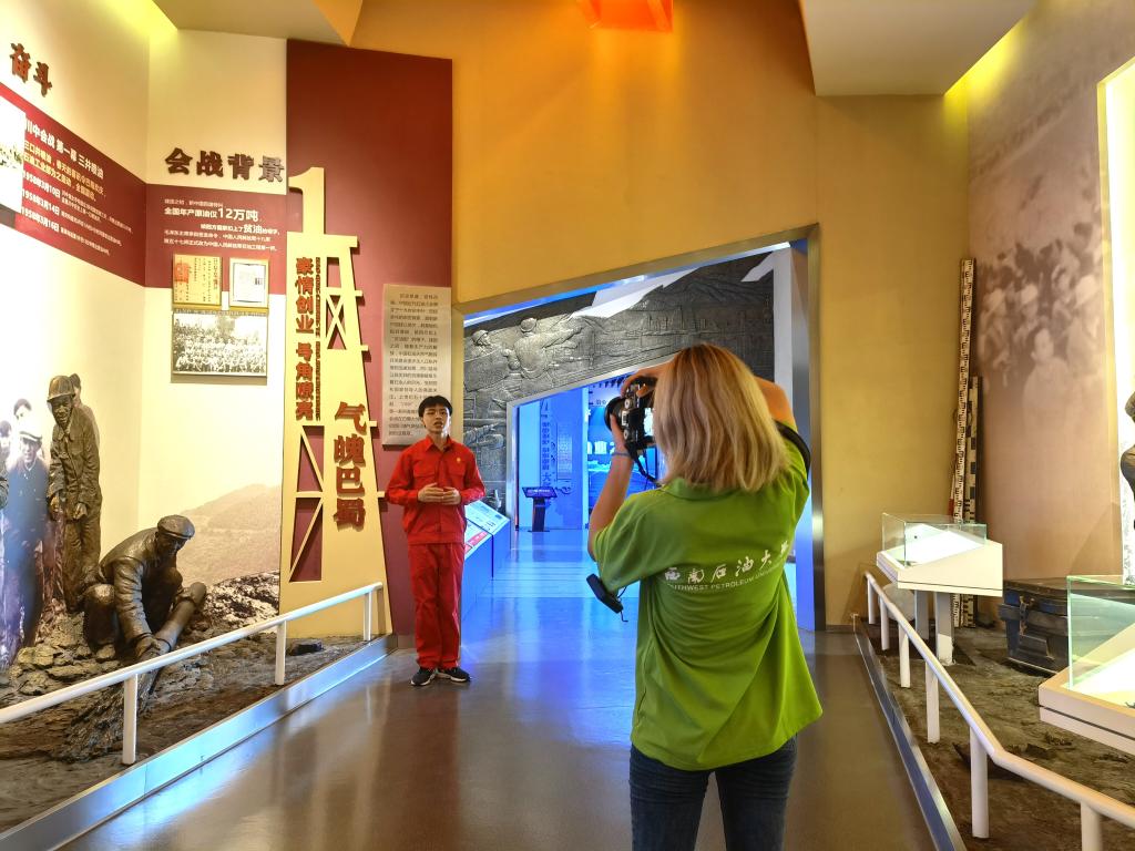 實踐隊正在四川石油會戰(zhàn)史館拍攝短視頻