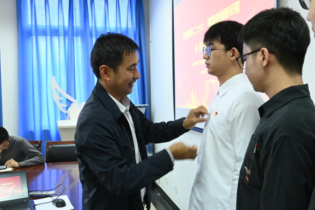 會上,蒲勇部長、陳俐宏副部長為新發展學生黨員佩戴黨徽,電信院自動化專業學生黨支部書記羅靜帶領全體新發展黨員重溫入黨誓詞。在鏗鏘的誓言中,學生黨員的初心受到洗禮,理想信念更加堅定。