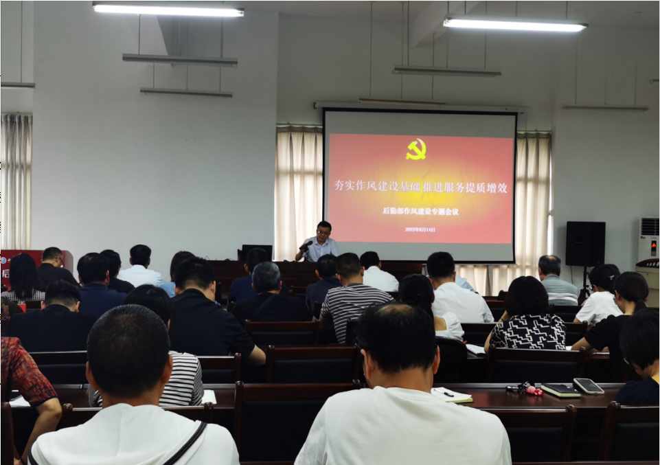 為貫徹習近平新時代中國特色社會主義思想和黨的二十大精神,落實習近平總書記關于作風建設的重要論述,持續轉變和提升后勤職工工作作風,6月14日下午,后勤部在后勤樓515會議室召開主題教育作風建設專題培訓會。會議由后勤部黨委書記鄧洪波主持,后勤部全體黨員和一線骨干參加培訓。