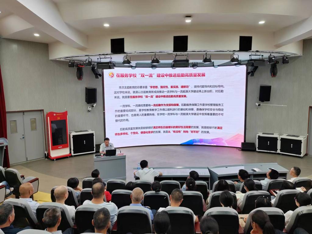 為引導(dǎo)后勤黨員干部用黨的創(chuàng)新理論堅(jiān)定理想、錘煉黨性、指導(dǎo)實(shí)踐、推動(dòng)工作,6月25日,黨委常委、副校長(zhǎng)李德海以《在服務(wù)學(xué)校“雙一流”建設(shè)中推進(jìn)后勤高質(zhì)量發(fā)展》為題,為后勤全體黨員干部上了一堂主題鮮明、內(nèi)容豐富、思想深刻的主題教育專(zhuān)題黨課。