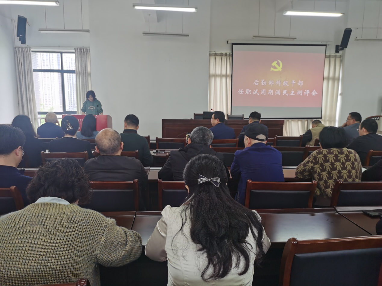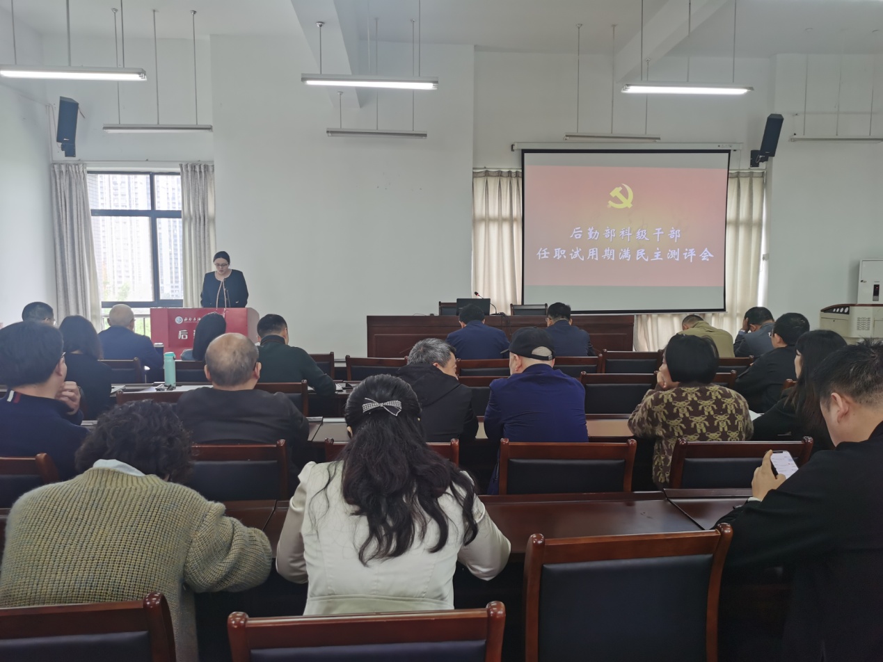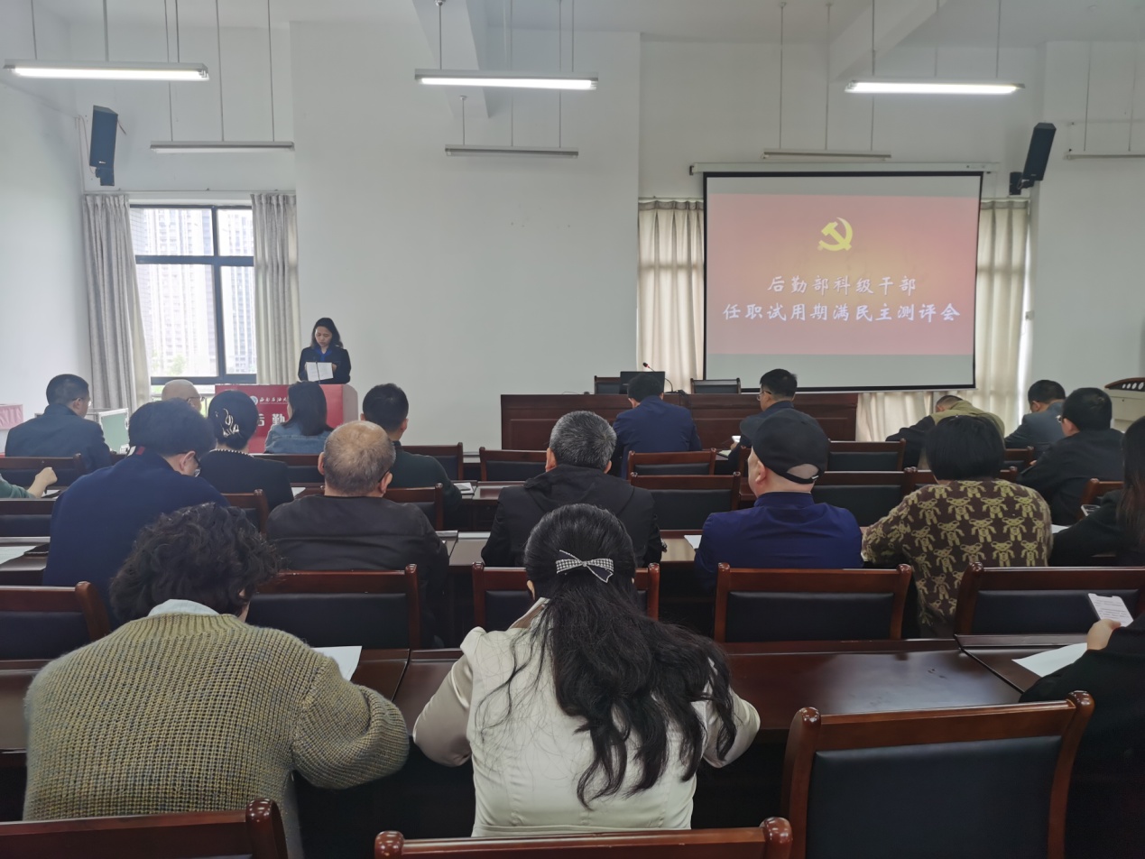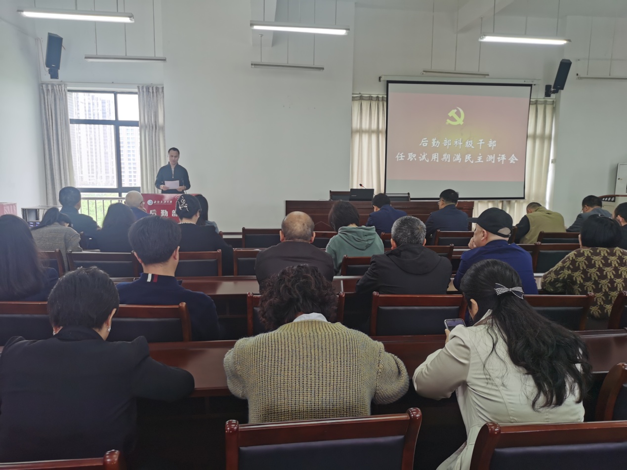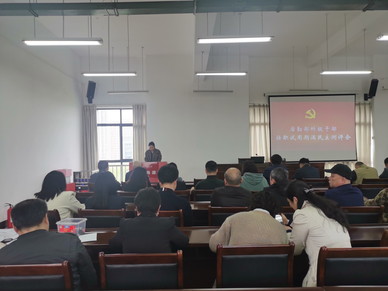 4月9日,后勤部在后勤樓515會議室召開科級干部任職試用期滿民主測評會。后勤部黨委書記鄧洪波主持會議,后勤部領導班子成員、科級干部及各中心一線骨干參加會議。