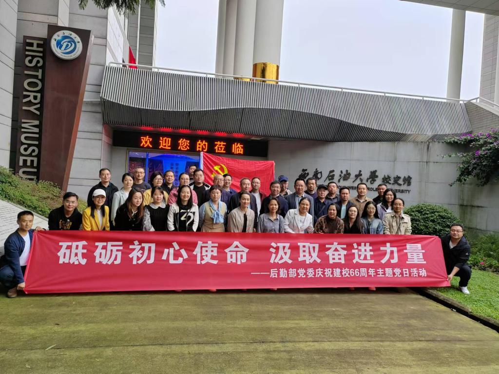 10月18日下午,后勤部黨員職工們身佩戴著鮮紅的黨徽,懷著崇敬的心情,齊聚于校史館前。活動(dòng)開(kāi)始前,后勤部黨委書(shū)記鄧洪波講到,西南石油大學(xué)66年的輝煌歷程,凝聚著幾代石油人的心血和汗水,作為后勤部一員,大家有責(zé)任和義務(wù)傳承和發(fā)揚(yáng)這種艱苦奮斗、無(wú)私奉獻(xiàn)的精神,為學(xué)校的教學(xué)、科研和師生生活提供更加優(yōu)質(zhì)的服務(wù)保障。