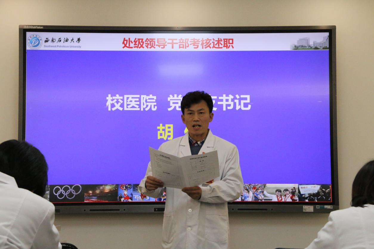 首先,胡俊書記對校醫院2023年度領導班子和處級領導干部考核述職暨民主測評大會的相關情況做了介紹。