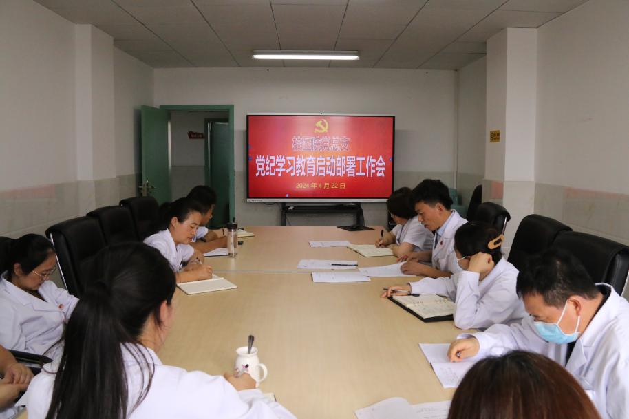 2024年4月22日,校醫院黨總支召開黨紀學習教育啟動部署工作會,校醫院黨總支書記胡俊主持會議,班子成員、黨總支委員、黨支部書記、科室主任參加會議。