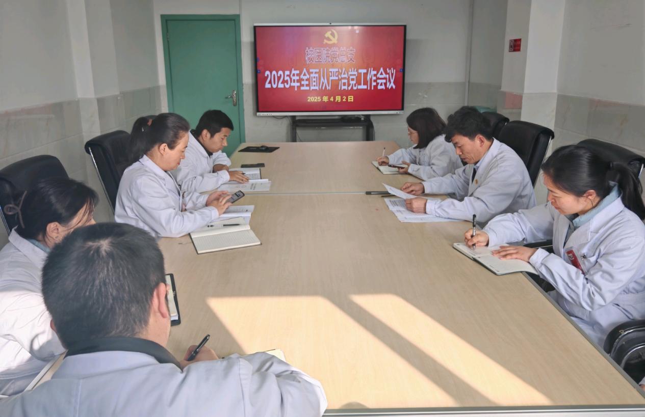 2025年4月2日,校醫院召開了2025年全面從嚴治黨工作會議。校醫院領導班子、科室主任參加會議,會議由黨總支書記胡俊主持。