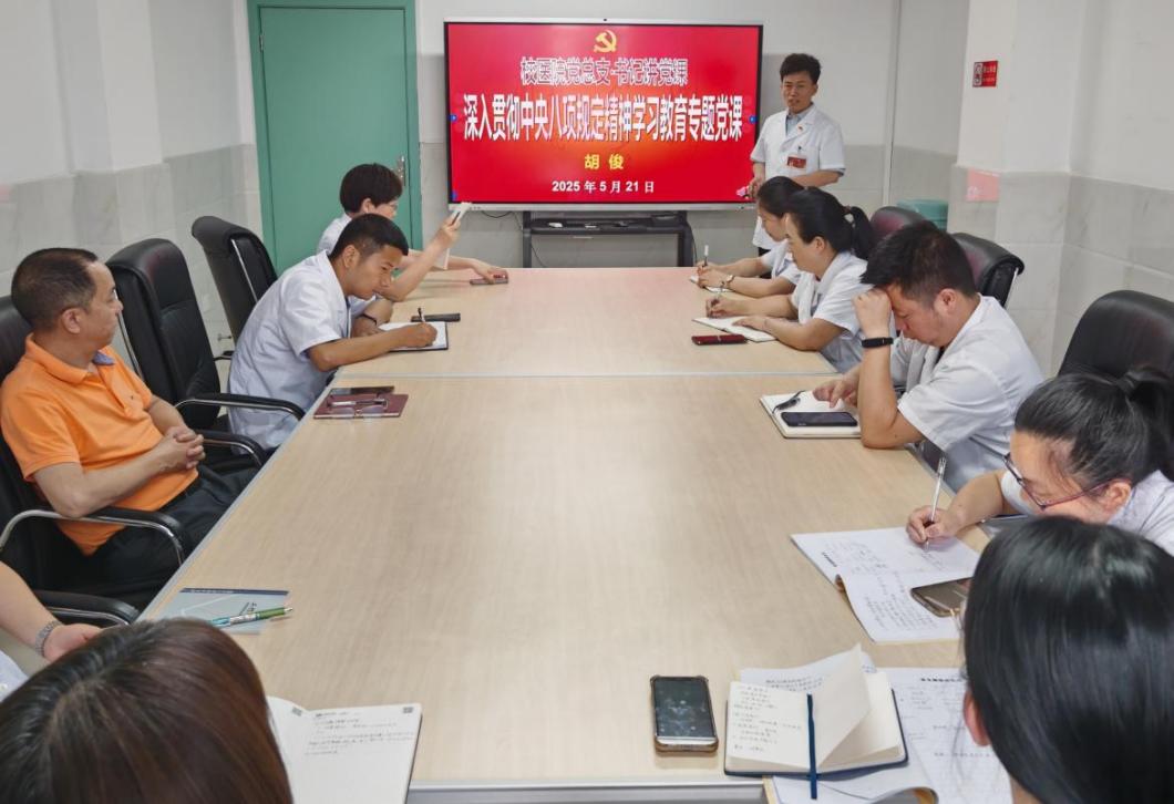 2025年5月22日,校醫(yī)院黨總支書記胡俊以“在學(xué)查改中不斷改善和推進(jìn)作風(fēng)建設(shè)”為主題,為全體黨員干部帶來了一堂理論豐富、實(shí)例典型的深入貫徹中央八項(xiàng)規(guī)定精神學(xué)習(xí)教育專題黨課。