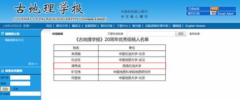 近日,地科院譚秀成教授獲評《古地理學報》“20周年5位優秀組稿專家”和“20周年20位優秀審稿專家”稱號。這兩項榮譽稱號在《古地理學報》創辦20周年之際,授予為期刊做出卓越貢獻的組稿和審稿專家,以表彰其高質量、建設性和高效率的組稿、審稿工作。獲獎人由《古地理學報》創辦過程中的1000余位組稿、審稿專家中選出。