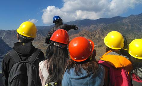 圖1郗愛華老師講解攀枝花釩鈦磁鐵礦尾礦壩設計理念及對生態環境的影響