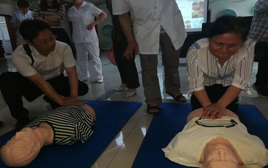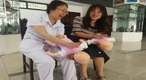 校醫院指導“海氏急救法”(嬰兒急救)練習