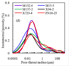 (c)核磁T2譜 (d)基于核磁共振的孔喉分布