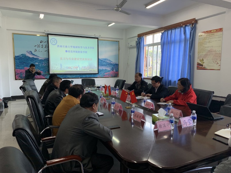 2020年1月9日,西南石油大學地球科學與技術學院與攀枝花學院釩鈦學院在攀枝花學院勵志樓一樓會議室開展實習與專業建設交流座談會。地科院范翔宇副院長、地質學專業建設負責人郗愛華教授、沉積地質教研室葛玉輝、基礎地質教研室方乙、付敬浩與釩鈦學院鄒敏院長、田從學副院長、院長助理安昀、教學科科長崔晏、相關專業建設負責人等參加了座談交流。