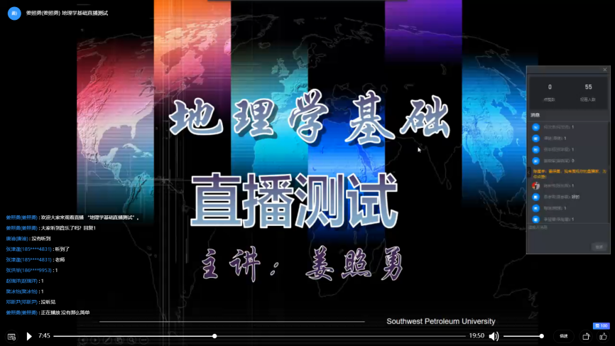 為保證線上教學順利開展,地信教研室承擔課程四門次,開課教師均進行了直播教學測試。